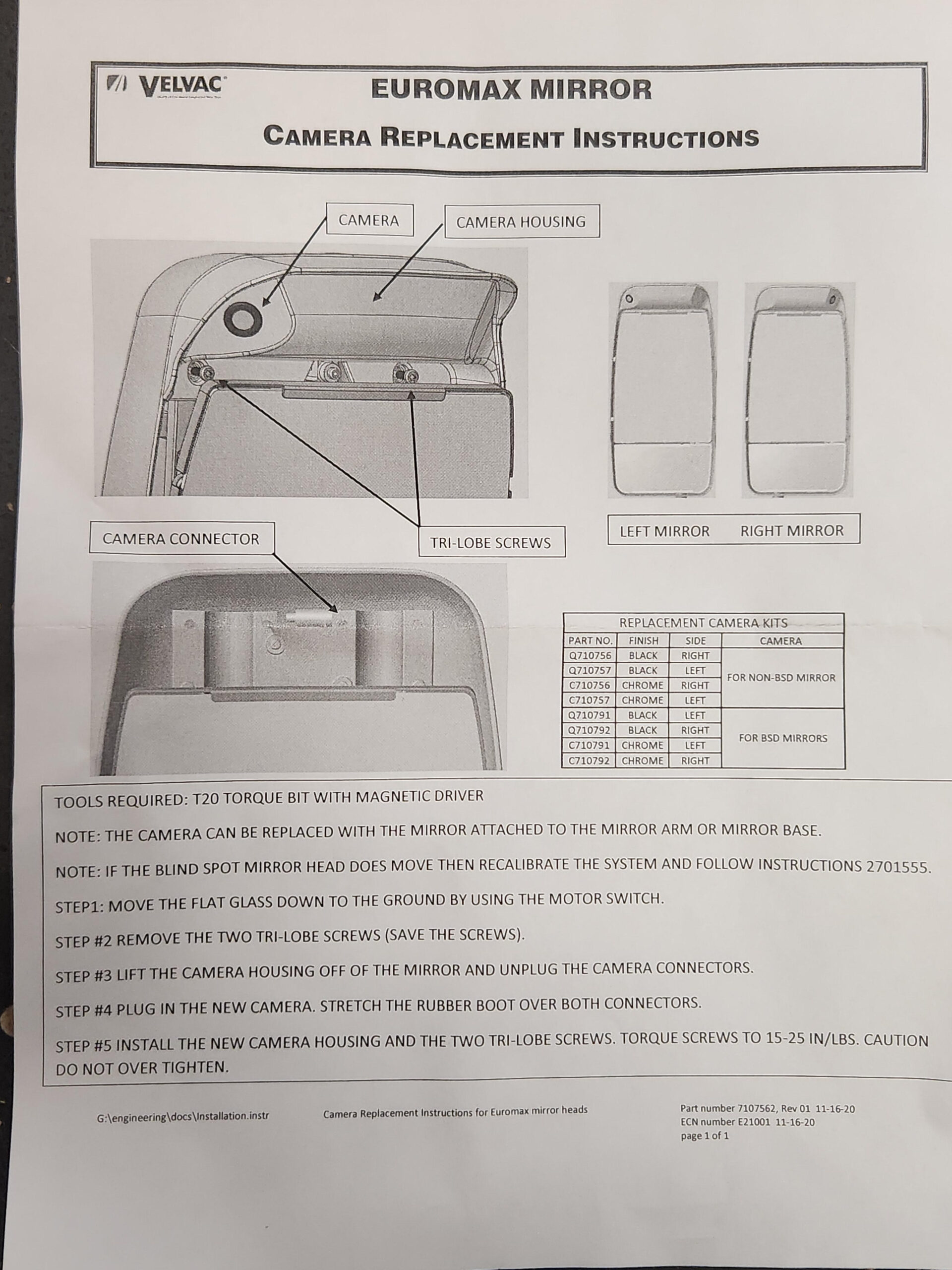 Velvac Camera and Housing Driver Side